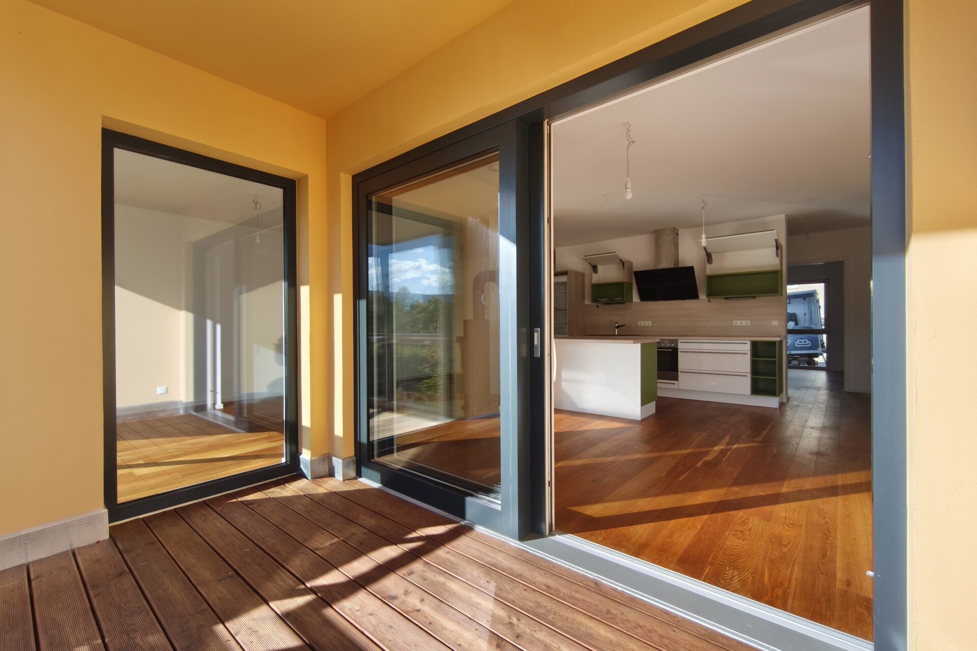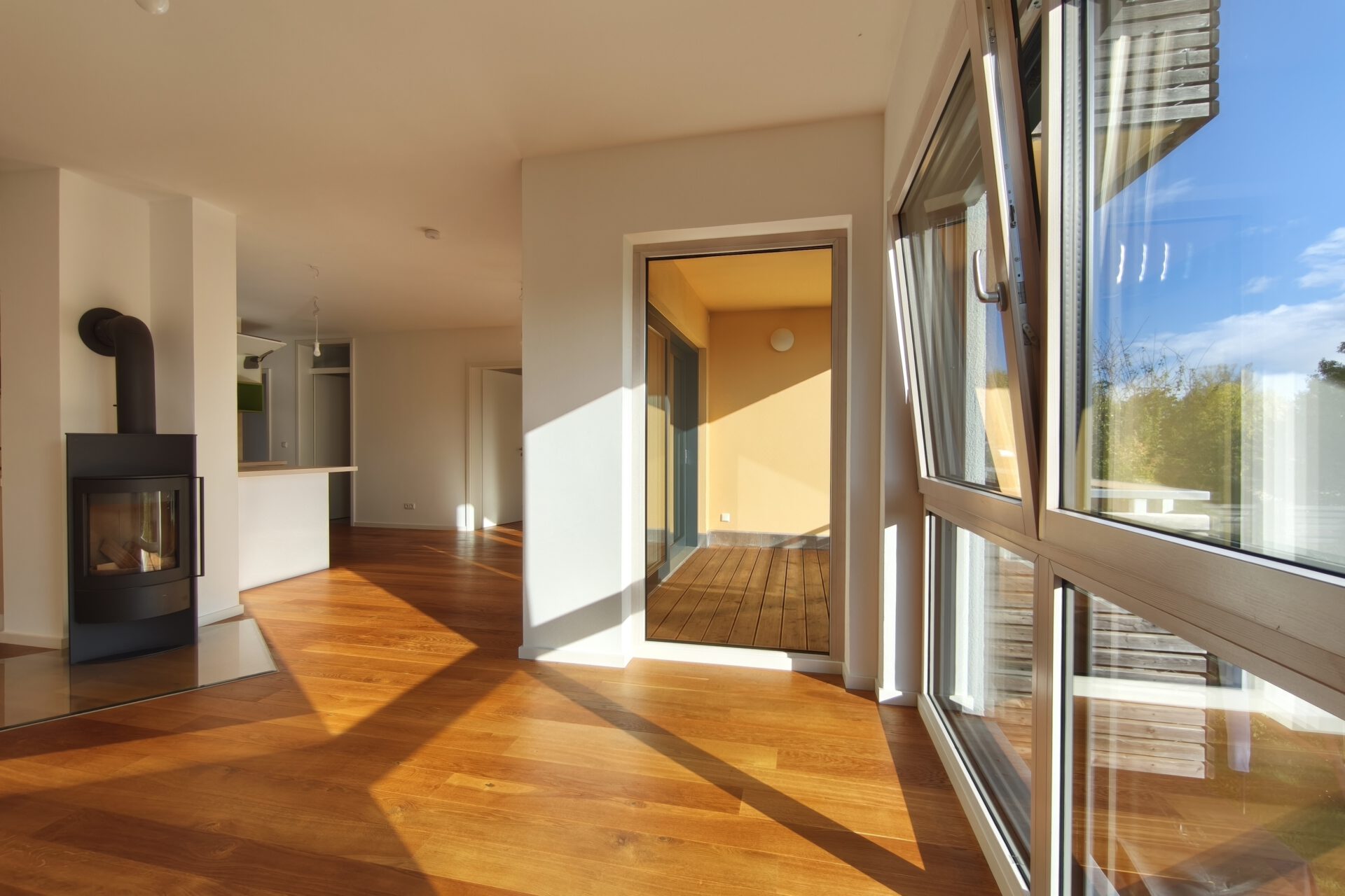 Energieeffizienz: Die 3-fach Verglasung in hochwertiger Holz-Alu-Konstruktion in Verbindung mit elektrischen Raffstore-Rollos und Warmwasseraufbereitung durch Solarthermie garantieren angenehme Temperaturen bei geringen Nebenkosten.