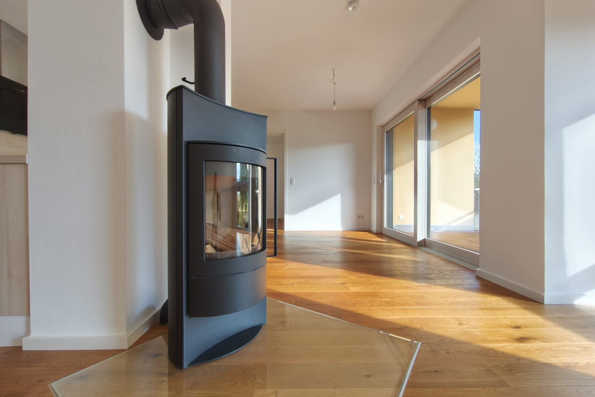 Gemütliche Atmosphäre: Ein hochwertiger Kaminofen im Wohnbereich sorgt für ein ganz besonderes Ambiente und minimiert zugleich die Nebenkosten.